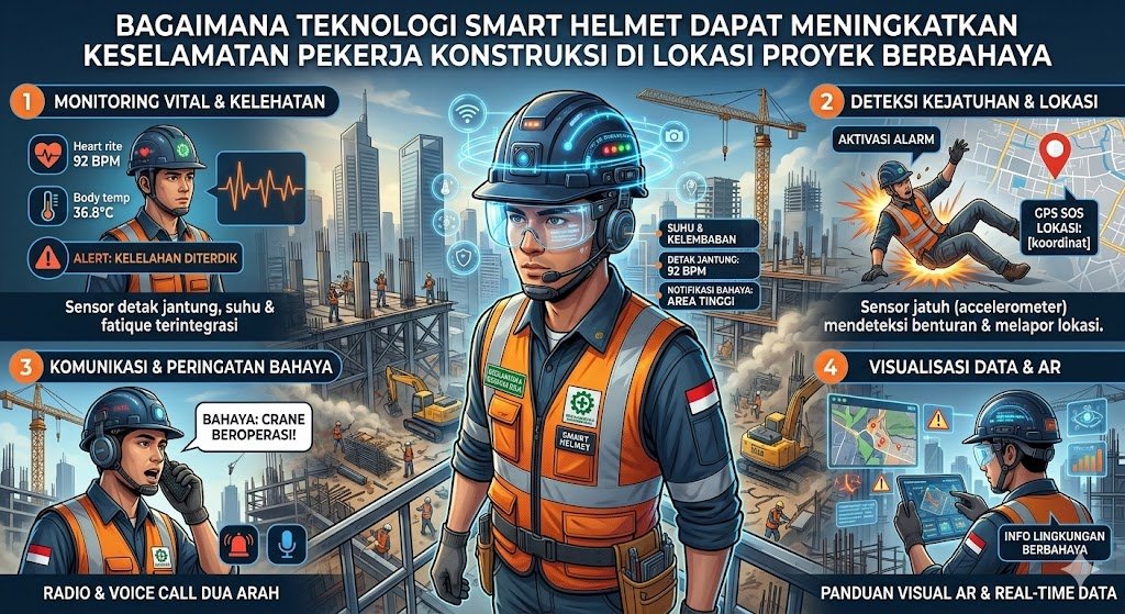 Industri konstruksi telah lama dikenal sebagai salah satu sektor pekerjaan dengan risiko kecelakaan kerja yang sangat tinggi. Di tengah dinamika pembangunan yang semakin kompleks, penggunaan alat pelindung diri konvensional sering kali dianggap belum cukup untuk memitigasi bahaya yang tak terduga. Di sinilah peran teknologi smart helmet atau helm pintar muncul sebagai revolusi baru yang membawa standar keamanan ke level yang lebih tinggi melalui integrasi sensor canggih dan konektivitas digital.
